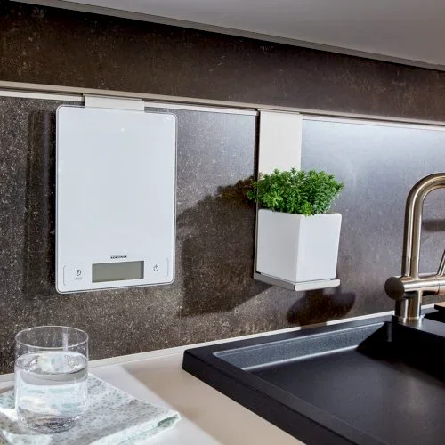 Manchmal muss es etwas mehr sein, dann reicht eine normale Waage für die Küche einfach nicht aus. Sie ist zu klein, zu schwer oder misst nicht genau genug. Ganz anders die digitale Küchenwaage Page Profi 300 von Soehnle, die es aktuell im Leifheit Online-Shop zu kaufen gibt. Das Gerät besticht durch seine Ausstattung der Extraklasse: Es hat ein extragroßes Display, eine extrahohe Tragkraft und extra viele Zusatzfunktionen. Mit dieser Digitalwaage für die Küche wird Kochen und Backen ein richtiges Vergnügen. Zur Ausstattung der digitalen Küchenwaage Page Profi 300 von Soehnle gehört die HOLD-Funktion. Sie ermöglicht es, die Anzeige auf dem Display für zehn Sekunden einzufrieren – perfekt, um das Gewicht sperriger Utensilien abzuwiegen, die über das Anzeigefenster hinausragen. Utensilien mit einer Last von bis zu 20 Kilogramm hält die Backwaage problemlos stand. Nichtsdestotrotz ist auch das Display mit seiner weißen Beleuchtung extragroß und schafft es, grammgenaue Messwerte zu liefern. Die komfortable Bedienung ist ebenfalls ein Aspekt, der den Kauf dieser Kochwaage rechtfertigt. Zwei Sensor-Touch-Felder reagieren bereits bei einer leichten Berührung. Hinter der edlen Optik der digitalen Küchenwaage Page Profi 300 von Soehnle versteckt sich die Zuwiegefunktion. Sie ermöglicht es, mehrere Zutaten hinzuzufügen und so das Gesamtgewicht von beispielsweise Mehl, Zucker und Backpulver zu erhalten. Das Modell ist sehr hygienisch und leicht zu säubern, zudem äußerst platzsparend. Dank der integrierten Abschaltfunktion ist das Gerät ebenfalls sehr energiesparend.- Dank der HOLD-Funktion wird das Gewicht zehn Sekunden lang eingeblendet